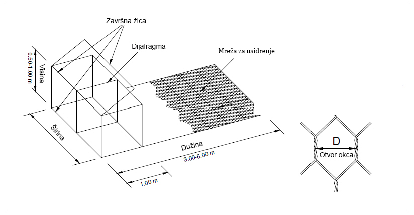 Gabioni su izrađeni od duplo udvojenog heksagonalnog žičanog pletiva čija je struktura blaga čelična žica.