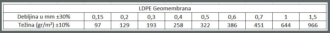 Geomembrane su geosintetički materijali izrađeni od polietilena (97,5%), uglenika(2,5%) i UV stabilizatora.