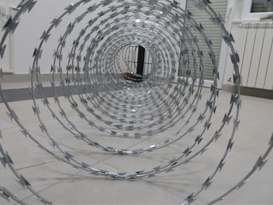 Spiralna žilet žica sa klipsama je izrađena od toplo pocinkovanog čeličnog lima debljine 0,5 mm i visoko ugljenisane pocinkovane žice debljine 2,5mm .